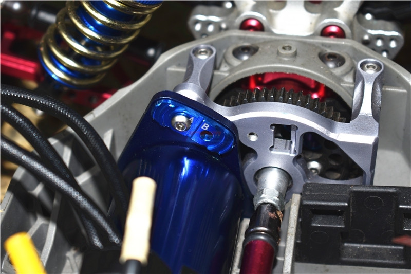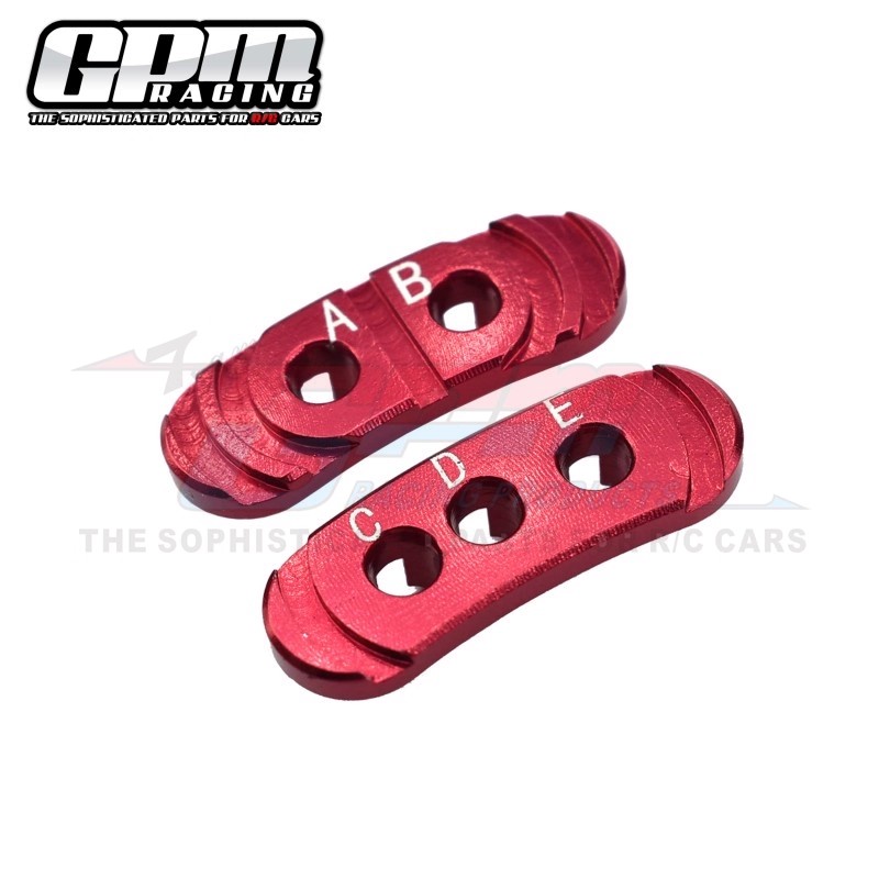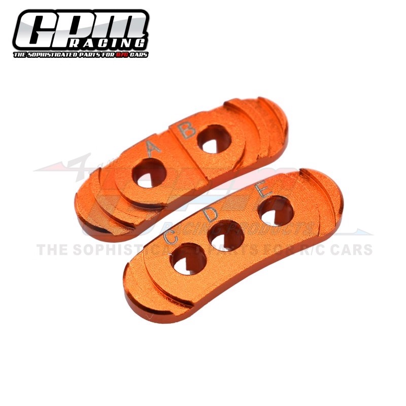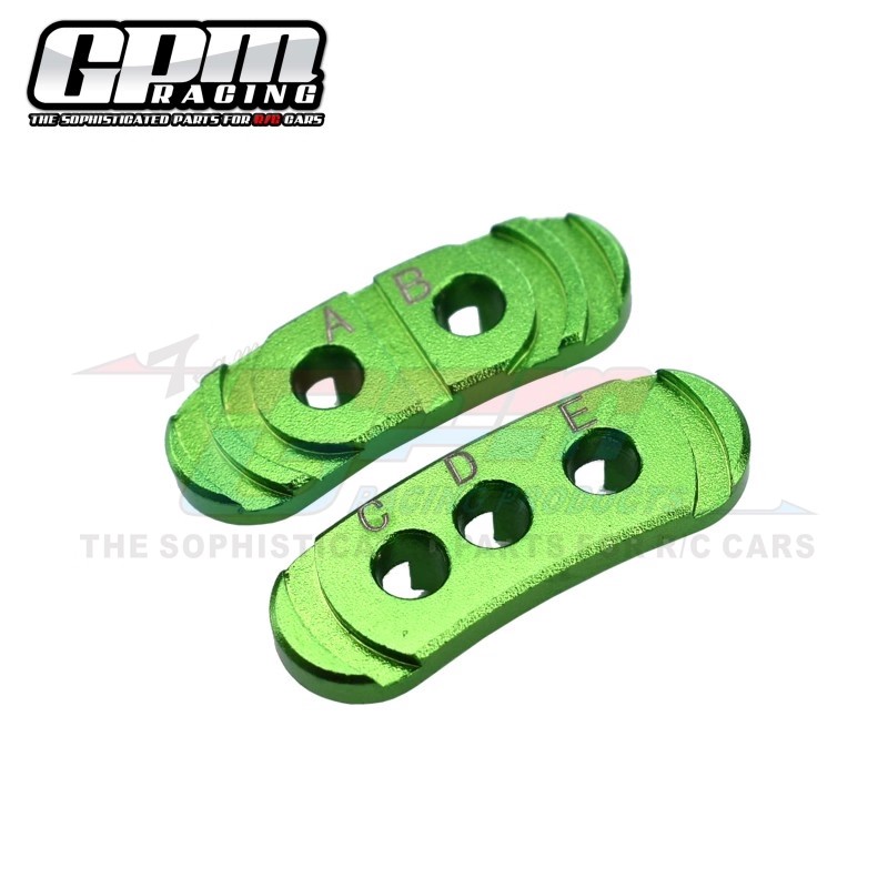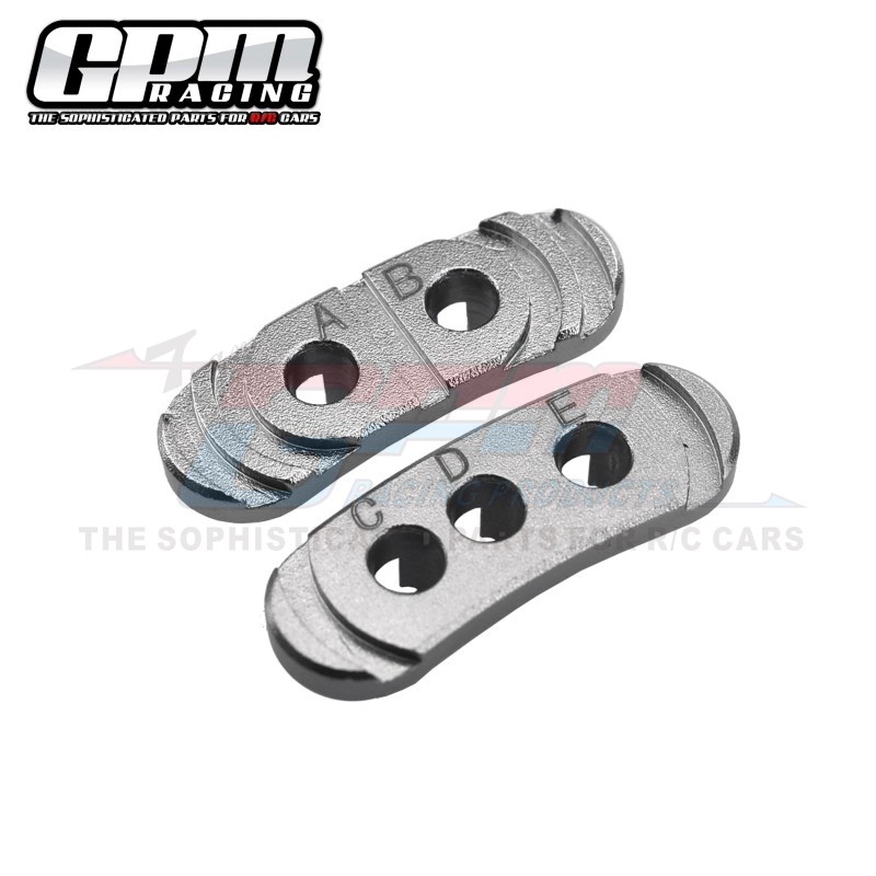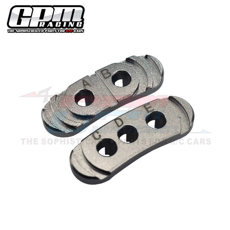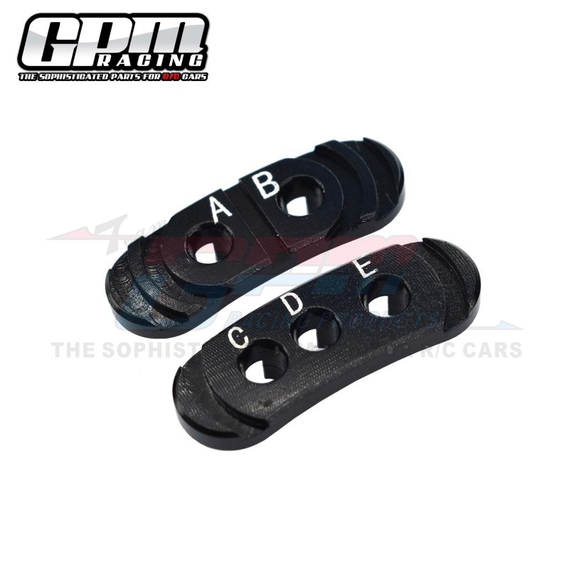 2. Features multiple mounting holes (A, B, C, D, E) allowing motor rotation for precise alignment. Adjusts motor gear and spur gear pitch to maintain optimal clearance for smoothest vehicle operation.