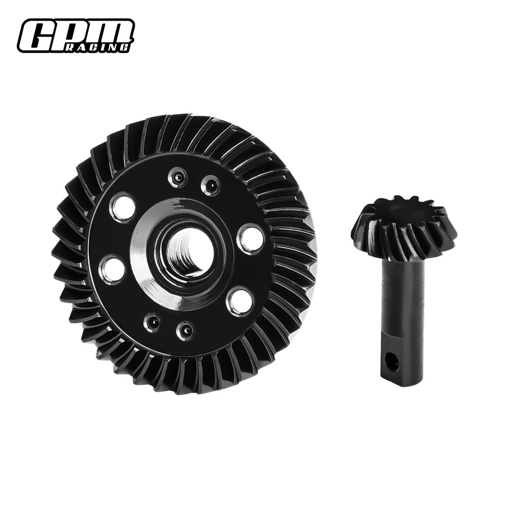 (4) GPM 37T ring differential gear and 13T pinion differential gear set compatible with Rally VXL front differential, Revo 3.3 front/ Rear Differential, Slash 4X4 Front Differential, Slayer Pro 4X4 Front/Rear Differential, T-Maxx 3.3 Front/Rear Differential, and XO-1 Front Differential.