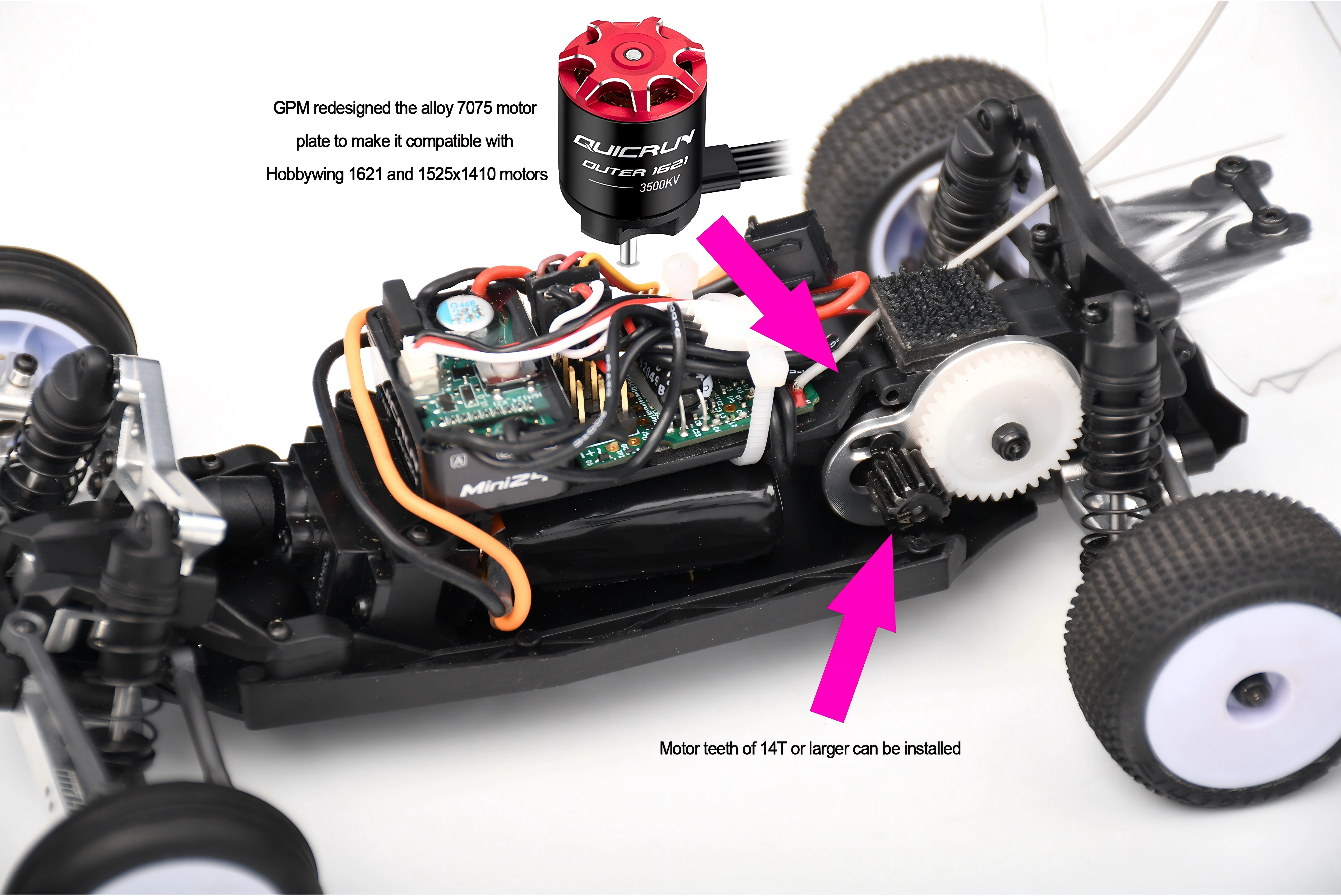 Part location: Between the center gearbox and motor Major advantages of upgrading to this part/product: (1) GPM redesigned the alloy 7075 motor plate to make it compatible with Hobbywing 1621 and 1525×1410 motors. (2) Motor teeth of 14T or larger can be installed. After installing GPM motor plate, the original gear cover cannot be closed, which is […]