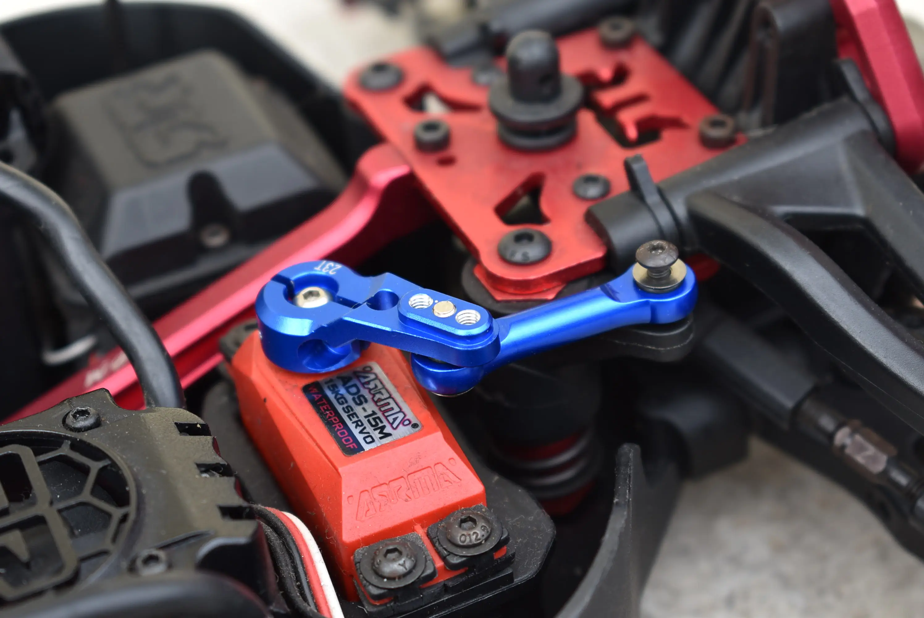 Servo horn and tie rod are made with a quality light weight high tensile strength aluminum 6061-T6 for great durability.