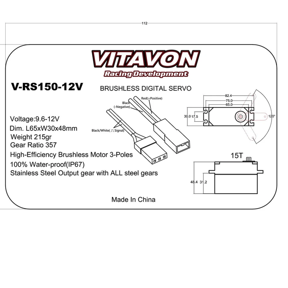 VITAVON Waterproof Brushless Servo Brushless Servo150kg15T For RC Car 1/5 V-RS150-12V