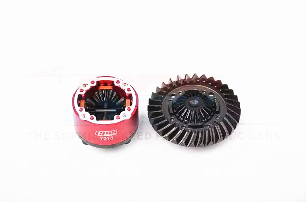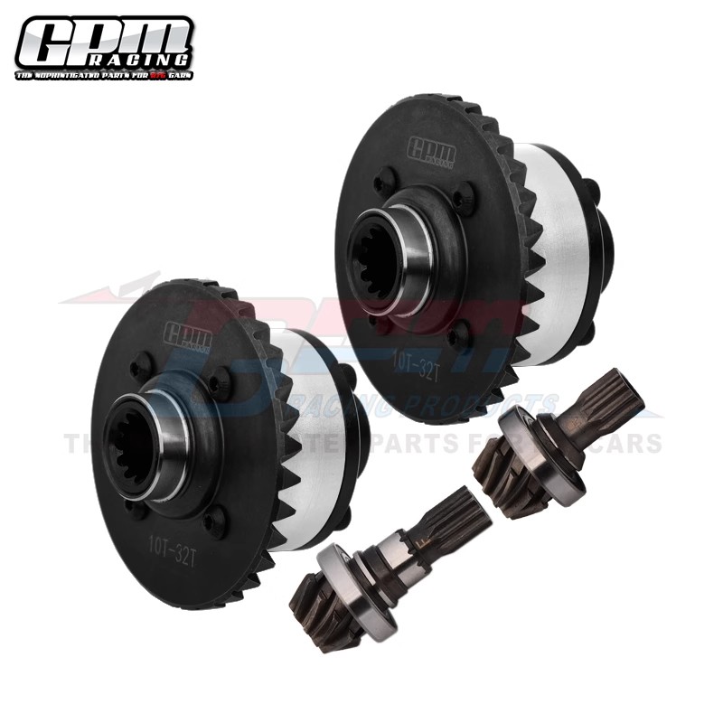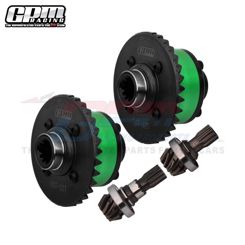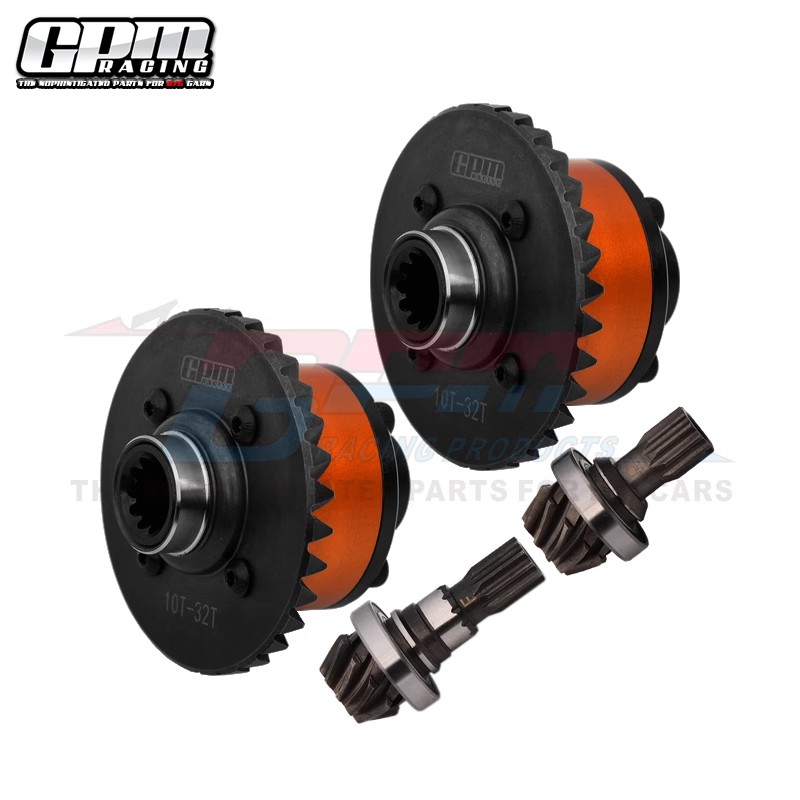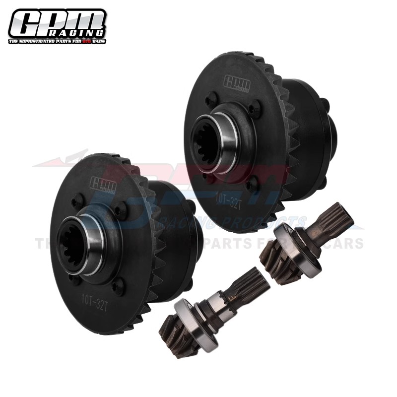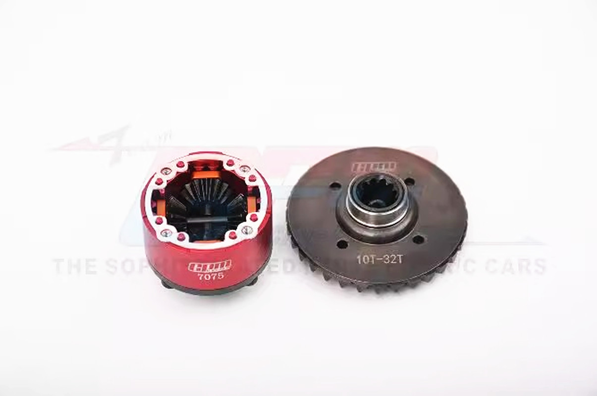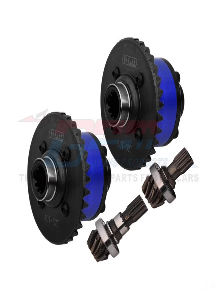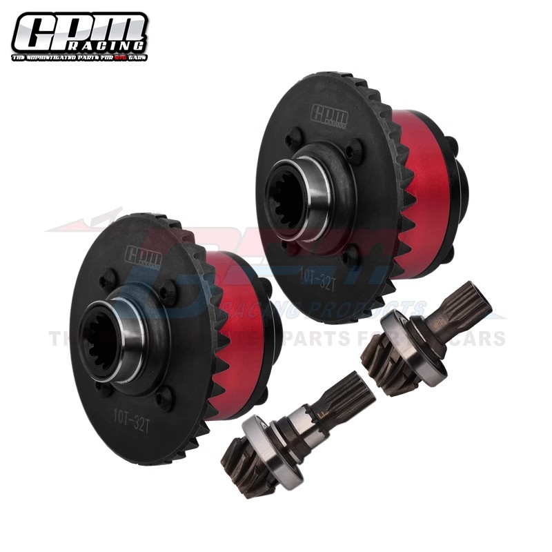 Fully assembled front and rear differentials ready for installation in your 8S X-Maxx or XRT. Complete set includes: Medium carbon alloy steel differential pinion gear 32T/M1.6 module, front and rear 10T pinion gears with 15x24x5 bearings, Differential gear set, medium carbon steel + 7075 aluminium alloy front differential case, 7075 aluminium alloy differential gear spacers, cross pinion shaft, differential case seal