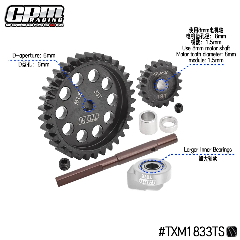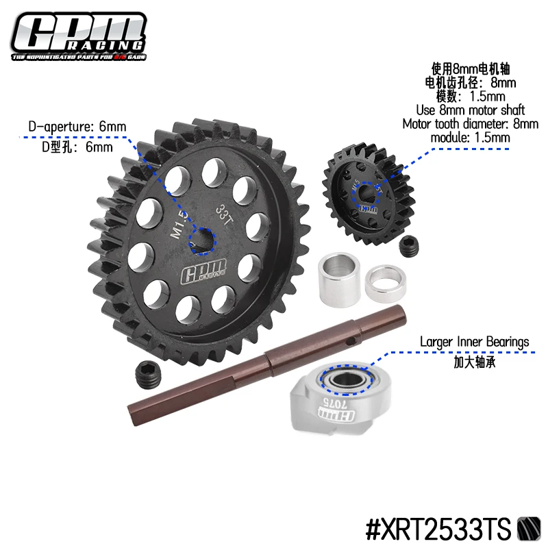 (2) The upgraded 40Cr Carbon steel Spur Gear 33T M1.5 and large gear shaft, bearing and aluminum 7075 fixed mount bring out three-point support, which is better than the original two-point support in stability and transmission effect.