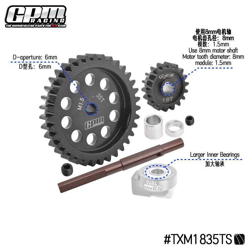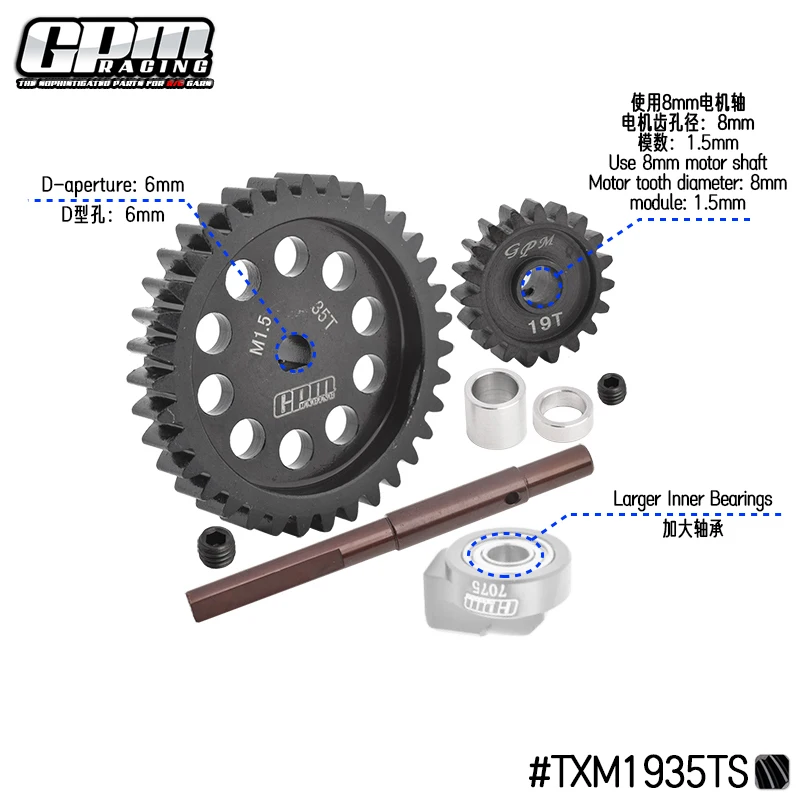 (2) The upgraded 40Cr Carbon steel Spur Gear 35T M1.5 and large gear shaft, bearing and aluminum 7075 fixed mount bring out three-point support, which is better than the original two-point support in stability and transmission effect.