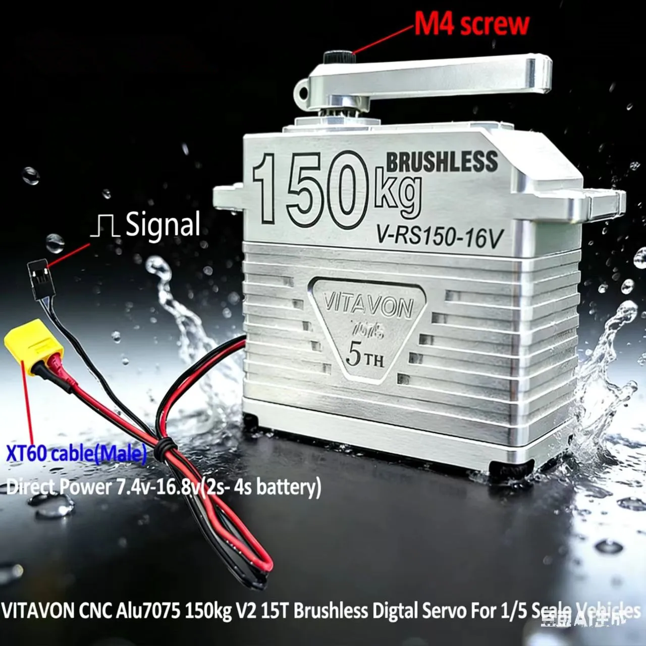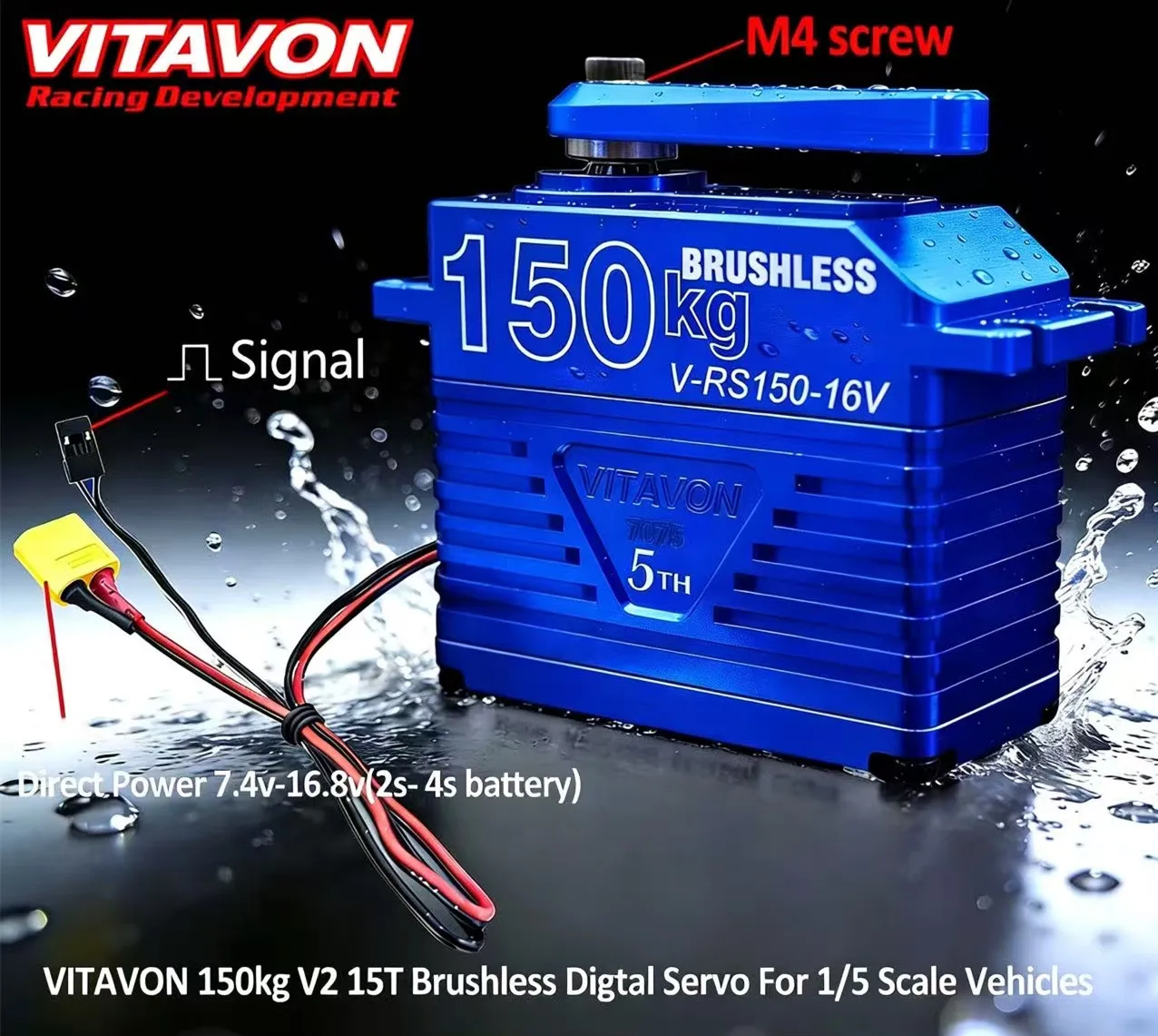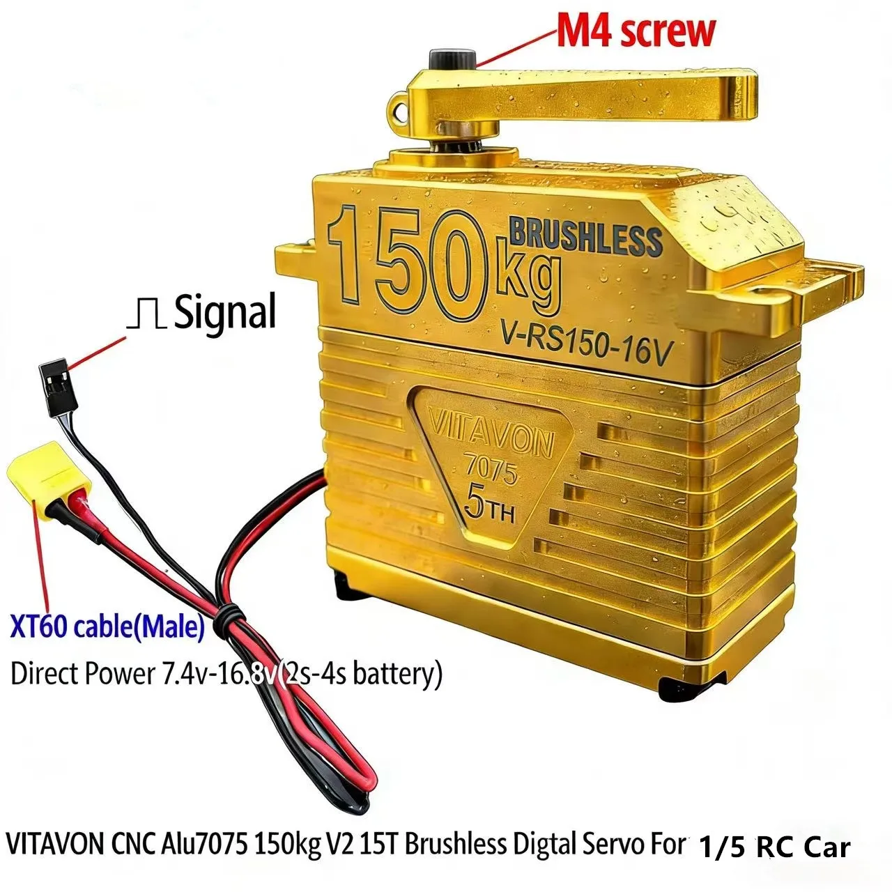 VITAVON 7075 Alu Brushless Digtal Servo 150kg 15T 180°/ 270° 7.4V-16.8V For RC 1/5 1/6 Car Robot Big Torque Robotic Servo