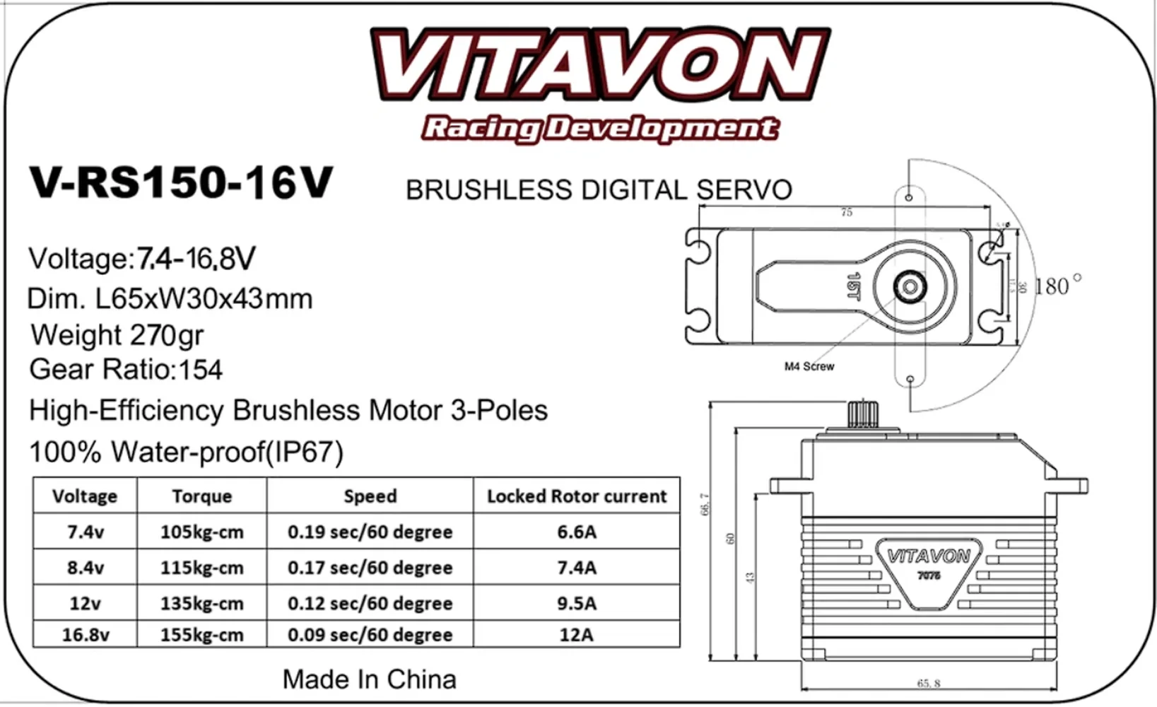 16.8V 155kg-cm 0.09sec/60degree 12A