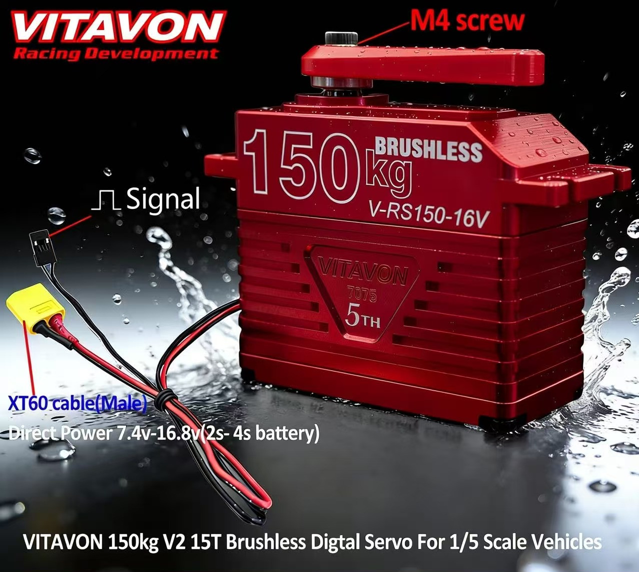 Product Name:VITAVON Brushless Servo Metal Gear Waterproof Brushless Servo150kg 15T For RC 1/5 Car Unmanned Aerial Vehicles Lndustrial Robots