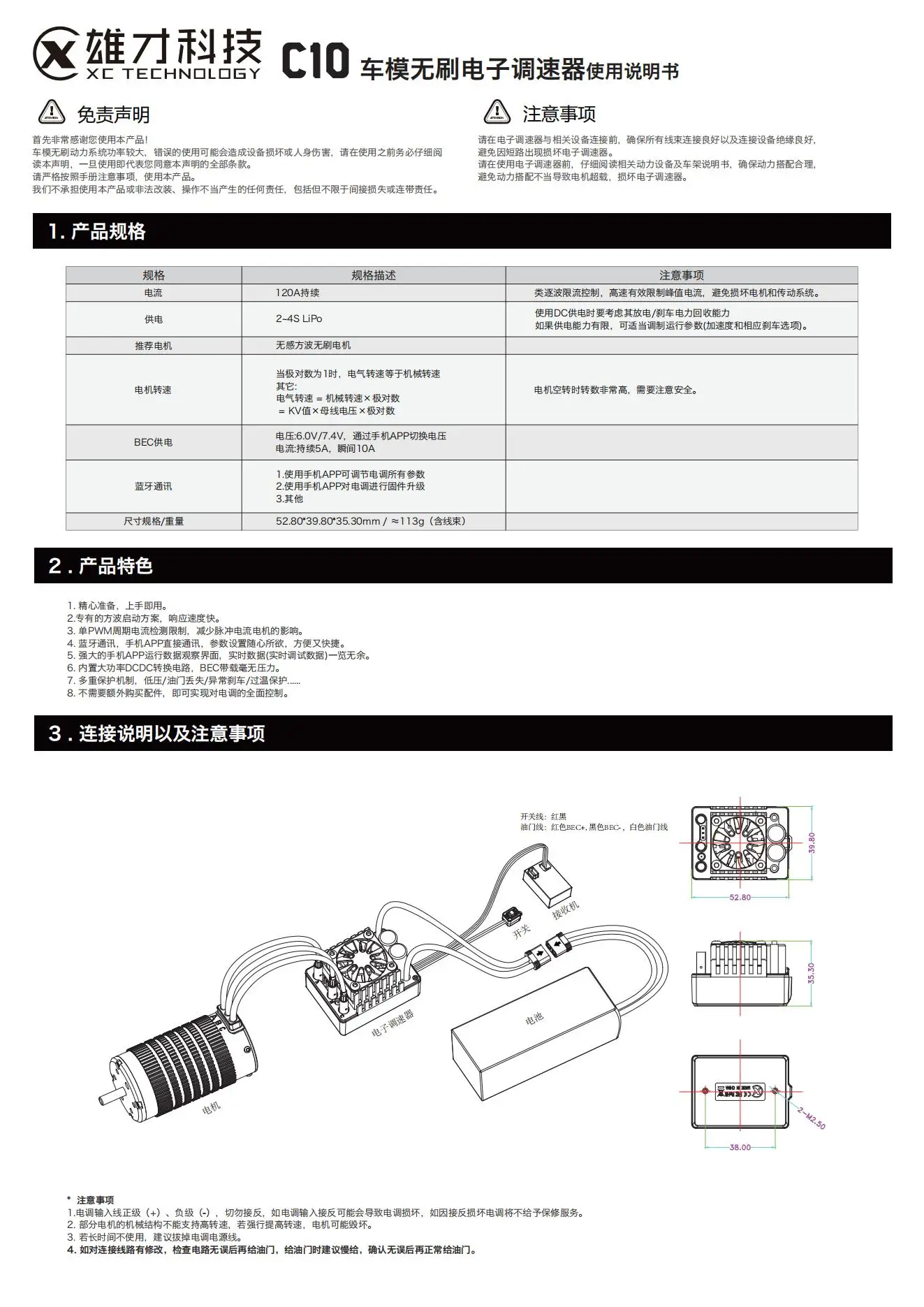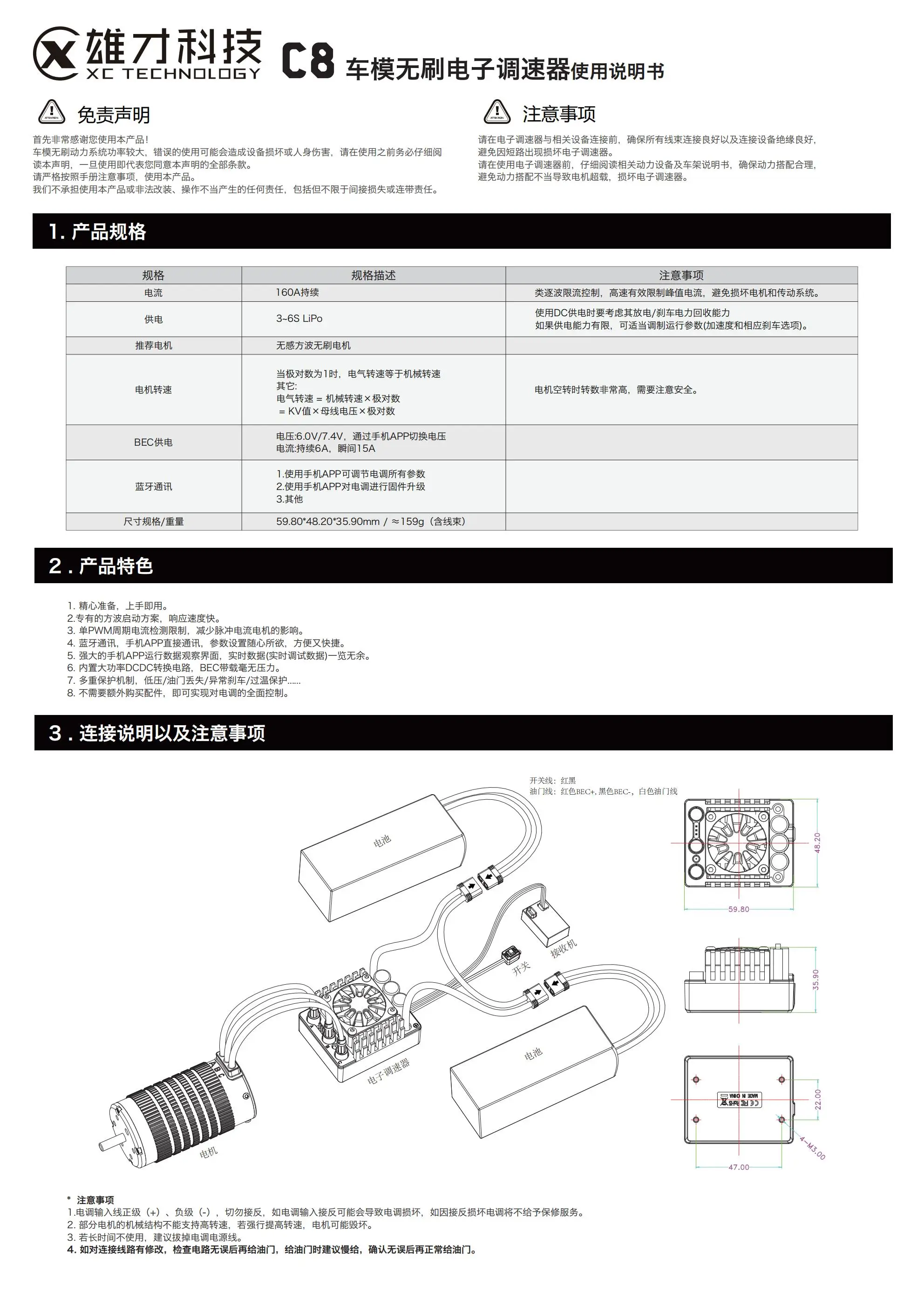 XC-ESC Waterproof C-series brushless electric tuning 60A 80A 120A 160A RC remote control car with built-in Bluetooth function